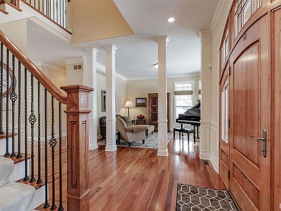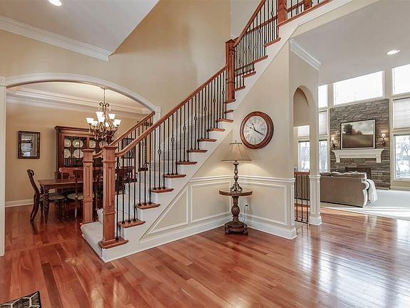 Absolutely stunning Century-built home in Covington Phase 3. From the moment you step onto the wrap-around porch with brick inlay design & arched doorway, you will notice the extensive amount of quality special features. The 2-story foyer & great room allow for abundance of light throughout the home. The rest of the main level has 10-ft. ceilings, with 9 ft. solid doors. Flooring on main level is gorgeous Brazilian cherry wood, & is also in 4 bedrooms, & even the walk-in closets! French doors off the dining room to a covered veranda offers more great flow for entertaining. The kitchen offers extra tall cabinetry, high-end appliances including a wine chiller, huge walk-in pantry, a gigantic island-- a true serious cook's delight. Laundry is on main level & also on 2nd level. The large deck overlooking the private tree-lined back yard is maintenance-free. Other special features are arches, special moldings, fireplace in master bedroom, a second staircase, & rounded corners. How many homes have a 4th boat garage? The daylight basement is very light & bright. This is truly a rare opportunity for this much space & quality, all in Northpoint, Discovery, Penn Schools.
