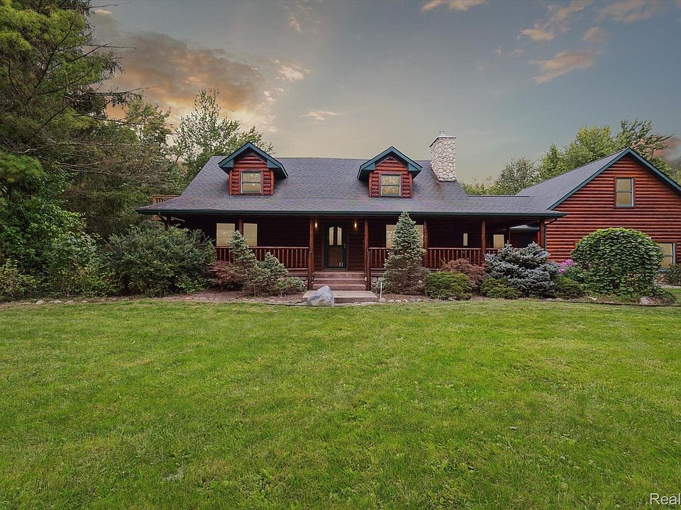 Your search stops here. Country living at its absolute best! A full covered porch with stamped concrete greets you on your approach up the driveway complete with beautiful landscaping. Once inside, you are welcome to stunning wood floors and a large, open floor plan with an eat-in kitchen and large family room with natural fireplace! Large laundry room with exterior door is perfect for pets and kids. Off of the kitchen is a beautiful 4-season room with stamped concrete and large windows overlooking the pool and backyard. Upstairs is the entire primary suite with attached primary suite and porch off of bedroom. Outside, you have a saltwater pool with lush landscaping and immense privacy. There is also a large barn with additional garage and storage space. All of this sits on 35 acres with picture perfect woods. Many trophy bucks taken off of property! Don't hesitate to see this one.