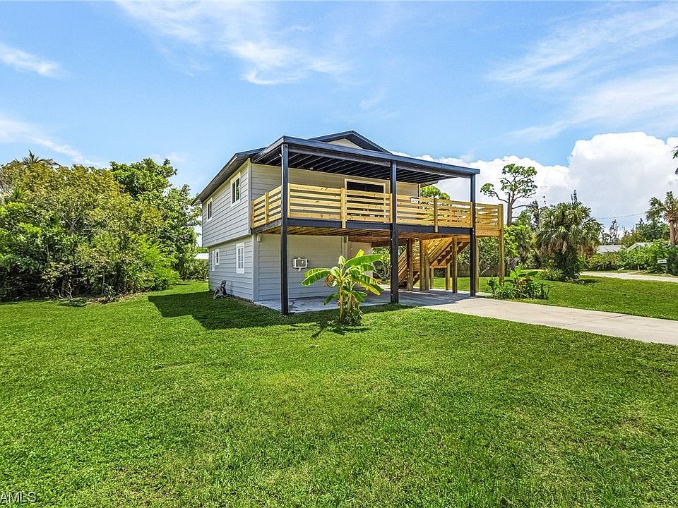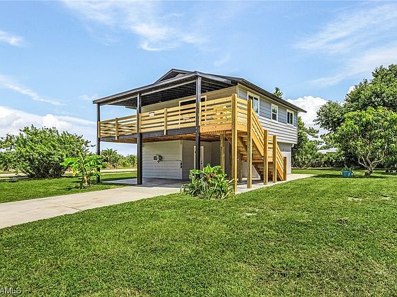 No Hurricane damage or flooding here. This updated 2 Bedroom 2 Bathroom home has a lot to offer. Besides enjoying the stunning sunrises and sunsets on the large front porch. The upstairs has many updated features. Newly installed FHIA Impact windows and a double-entry impact front door with smart door locks. FHIA impact windows and doors have warranty covering glass breakage that transfers to the new owner. Central A/C with whole house HEPA air filtration, luxury waterproof stone core vinyl floor, marble windowsills and a beautiful NEW kitchen and bathroom. This home has brand new engineered built stairway with attractive modern railing to the large patio to enjoy the second story views, a NEW 200amp electric panel, whole house surge protector and a NEW septic system. Downstairs has a great additional multi purpose air conditioned space that has also been nicely updated. Additional rooms downstairs include a laundry room with a utility sink and sprayer and a separate workshop. This home sits on a large lot with mature mango and lime trees, and has plenty of room for a pool, garden and a play area for the children. Nearby are some great restaurants and boat ramps. Fish Charlotte Harbor, Boca Grand Pass or visit beautiful Cayo Costa Beach. This home has been virtually staged.