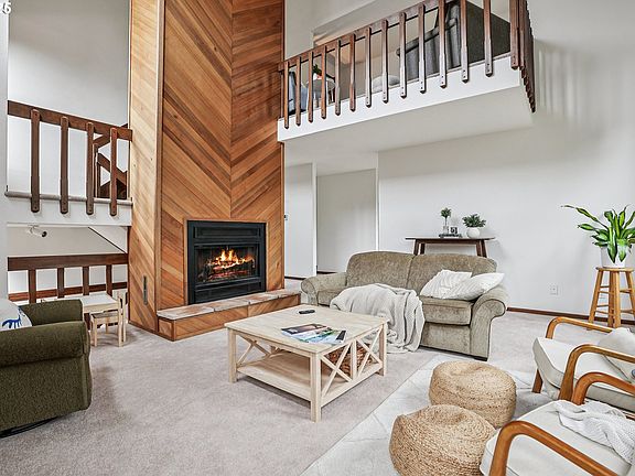 - Features: Fireplace, High Ceilings, Wallto Wall Carpet