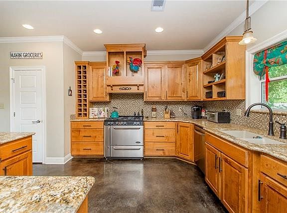 You will fall in LOVE with this beautiful custom built 4 bed/3 bath home nestled on .91 acres! Very spacious floor plan offering an open concept feel. A chef's dream kitchen with a 36" commercial gas range, granite counters, walk-in pantry & custom cabinets with a built in wine rack! Windows flow throughout offering tons of natural light. Wood/gas burning fireplace in living. Large master suite w/ walk-in closet, 6' soaking tub & walk-in shower. Two bedrooms share a "Jack & Jill" bath. AND so much more ...