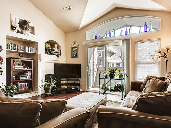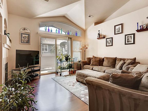 Pristine light & bright condo in fantastic Cherry Grove East II community! Open living room with soaring ceilings & charming fireplace with tile surround & built-in media center is highlighted by tons of natural light from private balcony & makes an impressive entrance into this home! Updated kitchen opens to large dining area for easy entertaining! 3 generous bedrooms & 2 full bathrooms, including sensational master suite w/ huge 7'x6' walk-in dream closet & attached bath. Top-level unit with no neighbors above additionally boasts updated flooring throughout, newer windows, laundry room w/ washer & dryer included, space-saving closets on balcony for water heater & ample storage, & 2 allotted on-site parking spaces! Great location, steps from playground & pool/hot-tub, plus perfect proximity to popular Highline Canal trail, shopping & dining galore, AND the new light rail station only a block away! 3 bedroom units of this size are rare to the market in this community, don't miss out!