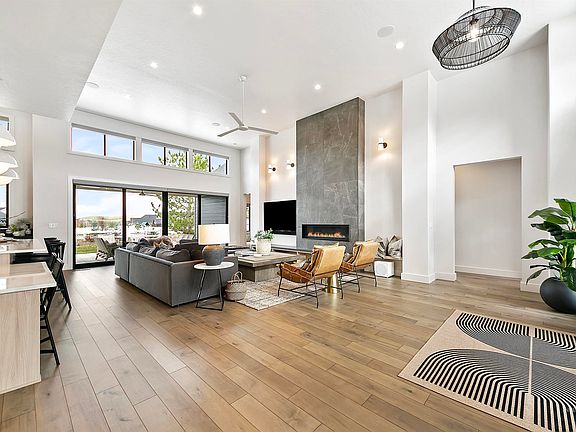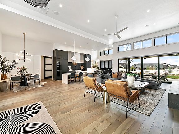 Discover a refined single-level home featuring an expansive 1,884 SqFt RV garage. This elegant residence offers 4 bedrooms, 3 w their own ensuite bathroom, ensuring privacy and comfort. 4th bed/bonus room w a charming fireplace, a dedicated office space, & heated, epoxy-coated garage w built-in storage to accommodate your vehicles, toys, & hobbies. The home is adorned w high-quality materials, including Thermador appliances, electric blinds, custom drapes, & solid core doors, showcasing a commitment to excellence. It seamlessly blends w its surroundings, adjoining open space w captivating foothill & mountain views that capture the essence of Idaho living. Located in the prestigious Dry Creek Ranch community, you'll have access to a wealth of amenities to fuel your adventurous spirit. With easy access to Idaho's mountain towns & proximity to the Boise metro area, this home offers both convenience & tranquility. Experience the perfect blend of luxury & practicality in a residence designed to impress!