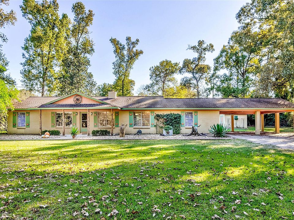 Come Home to the Peace and Tranquility of this Home on 7 Pristine & Manicured Acres with a Park-Like Setting. Beautiful Oak Trees, Bermuda Mix Grass, Large Pond & 4 Stall Horse Stable are Just Some of the Outstanding Amenities this Property Has to Offer. The Home is a Desirable 1-Story Ranch that Features Front & Back Covered Porches, Light & Bright Interior, Breathtaking Floor to Ceiling Wood-Burning Brick Fireplace with Hearth, Open Floor Plan, Eat-At Kitchen Counter, Split Floor Plan with Primary Bedrooms, 2-Spacious Secondary Bedrooms & Study or 4th Bedroom. Extensive, Original Hardwood Floors Add to the Character & Charm of this Well Maintained Home. The Versatile Floor Plan Offers Lots of Opportunity to Arrange the Home the Way You Want to Live. Enjoy Coffee on Your Patio in the Quiet Mornings or Take In the Lovely Evenings at Sunset. You Will Love Calling this Your Home and Best of All, It's Just Minutes from 99, Interstates 69 & 45, Shopping, Restaurants & Medical.