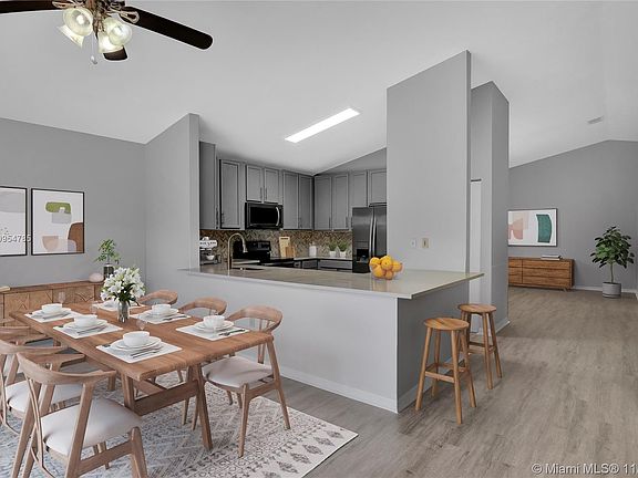 Beautiful West Kendall Home in the Country Walk area within minutes from amazing shopping, dining, and some of the areas best schools and local businesses. Remodeled kitchen with quartz countertops and stainless steel appliances. Freshly painted inside with panel window treatment and accordion shutters around the home. Equipped with alarm and security cameras throughout all four corners, connection included. From the moment you open the double doors, you are greeted by a grand vaulted ceiling. Split floor plan separating the master suite from the three additional bedrooms. Plus a one car garage with a built-in laundry unit. The glass doors lead you to the spacious backyard where you can entertain and get creative. This community has NO HOA, permitting the creativity to make this your HOME!