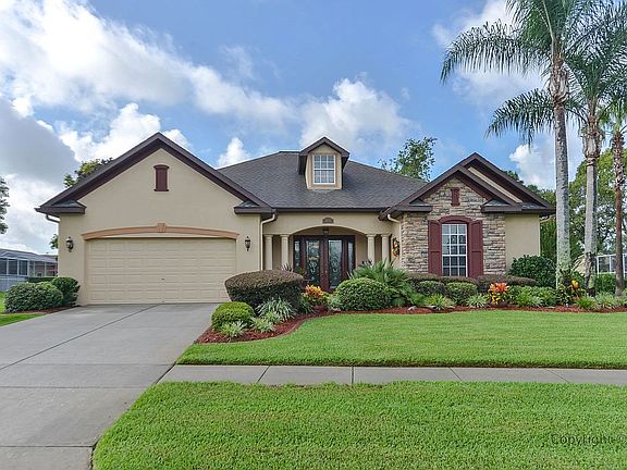 Located in the beautiful subdivision of Pristine Place. Conveniently near the Suncoast parkway, shopping, and schools. This gated community has so many amenities like tennis court, playground, pool, community center and more. Lush yard and landscaping give the home car stopping curb appeal. The a/c unit was replaced in 2017, and the home has a central vac giving you one less thing to worry about. A welcoming front porch area brings you to double door entry into this stunning home. So much architecture in this home. The pillars with archways, trey ceilings, wall niches, and crown molding bring character to the inside. The formal living and dining room greets you at the start. Sleek tile floors flow through this area and into the guest bath as well. The kitchen is right out of a magazine. Tasteful color cabinets along with elegant granite counters compliment the stainless-steel appliances. The breakfast bar overlooks the breakfast nook with bay windows of the lanai area. Vinyl plank flooring flows through the kitchen and into the bonus family room area, this area has French door access to the pool area. The half bath on this side of the home is very convenient. The guest bedrooms are very spacious, one holds comfortable carpeting and the other has wood flooring. The master bedroom is stunning and very spacious, all your large furniture will fit in here. Why go to the spa when you can enjoy a spa like atmosphere at home. The master bathroom is equipped with gorgeous vanities, a walk-in U shaped closet with a second access door, a garden tub in the center and a large walk-in shower. Once you make your way to the lanai you will never want to leave this area. Relax with the fan above you or cool off in the pool area. The mature landscaping continues all throughout the back of the home and keeps this area private. The back yard is fully fenced in and gives you a park like setting. Don't skip over this one!