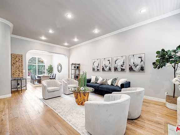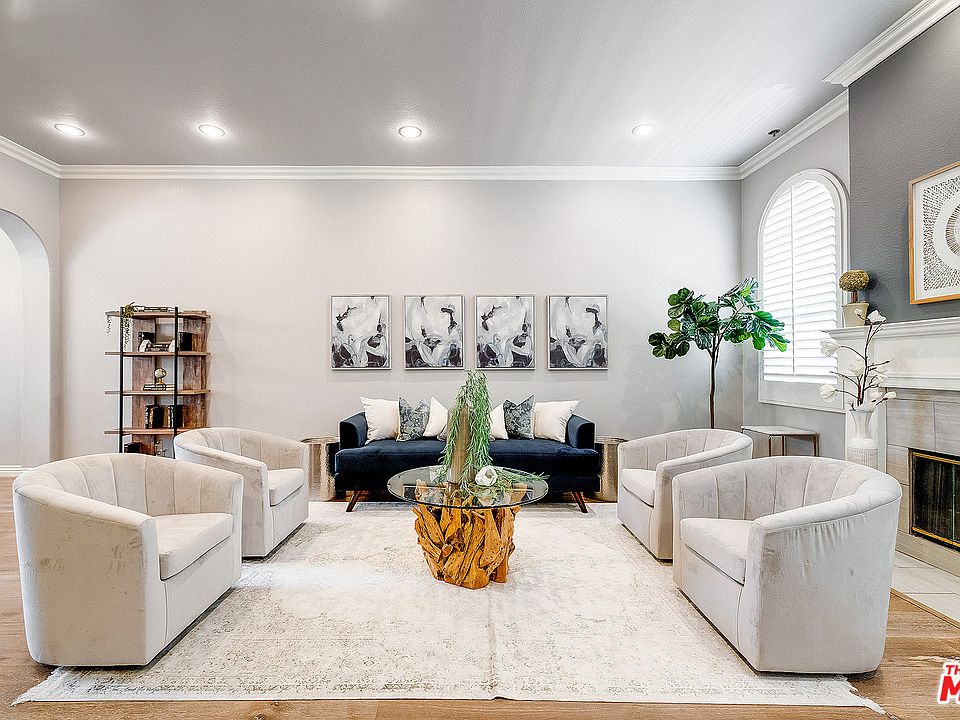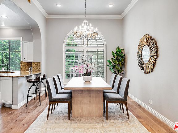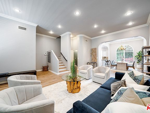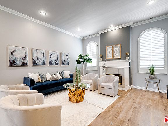 Ideally situated just south of Ventura Blvd., this spacious three-bedroom townhome offers luxury living within walking distance of restaurants, shops, and more. Enter into a spacious living room with soaring ceilings, beautiful distressed wood floors, recessed lighting, and an elegant fireplace. Custom wood shutters allow natural light to flood the living space while maintaining privacy. A beautiful archway leads to the adjacent dining area, which opens to a large kitchen with granite countertops and stainless steel appliances. Powder room conveniently located on the main floor for ease of use by guests. All three bedrooms are located on the second floor, including the master bedroom with a large walk-in closet with custom built-ins and an elegant en-suite bathroom with dual vanity, standing shower, and separate soaking tub. Additional full bath also located upstairs shared by the adjacent bedrooms. Continue upstairs to a private rooftop deck with views of the city. In-unit laundry located downstairs, along with a bonus room perfect for an office, gym, or play room. Downstairs private direct-access garage with epoxy flooring provides plenty of additional storage space and side-by-side parking. HOA dues include secure and private gated access and earthquake insurance for the building. Added bonuses include newer roof and skylights, and whole-house fan.