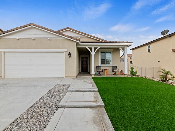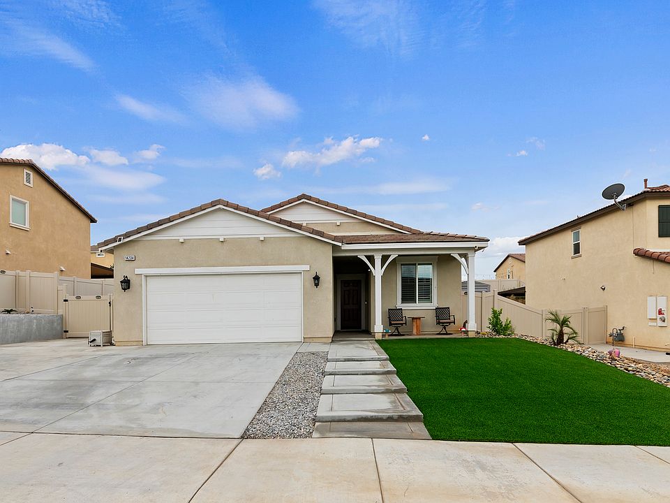 This home is the definition of PRIDE IN OWNERSHIP! This home includes Solar, Rv parking, behind the gate which is 70x14.5. Brand new mulch & rock in backyard, as well as brand new front yard turf. 5 x 8 Shed is included. Remodeled garage with paint, hex lights, and ac/heater split, epoxy floor, and two 5x8 storage racks rated for 600 lbs each Brand new modern paint through out the whole house and near new carpet in all of the rooms with Vinyl Plank flooring throughout the rest of the house. This house contains custom cabinets, butcher block counter top and floating cabinets in kitchen/ dining area, Custom cabinets and shelving in laundry room. Soft water system running throughout the whole house as well as beautiful shutters. A/C Service plan is included maintaing service and every 4 month filter changing. All appliances included as well as master tv, living room tv, and garage tv (all wall mounted) 36x12 patio cover with added outlets, lights, 2 fans. Various Upgraded outlets to two gang switches in dining room, garage, and added exterior outlet for Christmas lights on edge/peak of house. Generator plug installed with transfer switch next to meter panel