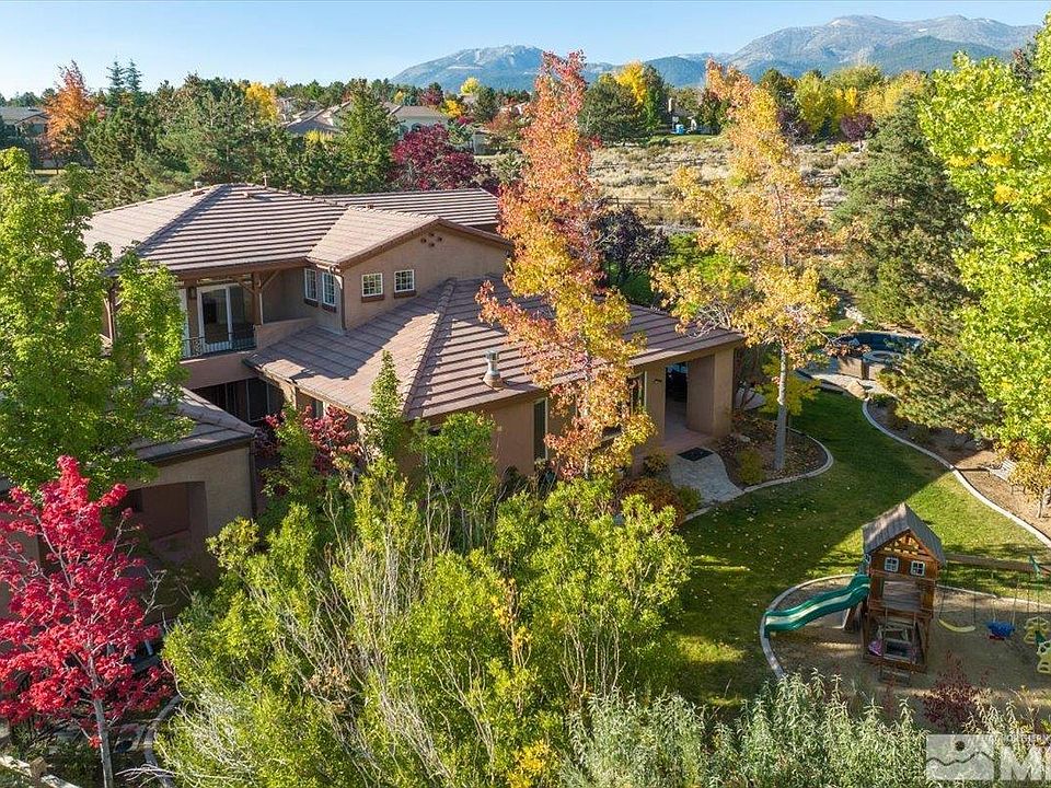 Saddlehorn, S. Reno’s most treasured community, all large parcels, mature trees & low HOA’s. Meticulously redesigned, 3 BR +office boasts gorgeous hardwood floors & stunning new staircase. A culinary haven, fully remodeled kitchen features gourmet appliances & modern cabinetry that seamlessly blend style & functionality. Main living spaces provide soaring ceilings & panoramic windows framing mountain views., Upstairs, indulge in the primary suite's spa-like ensuite & private balcony. A dedicated office enhances the home's versatility. The newly redesigned backyard retreat, is a true entertainer's paradise, a custom stone firepit, outdoor kitchen & bar area. The meticulous remodel extends from the custom finishes to the thoughtful layout, creating a haven of luxury. With top-rated schools, shopping, and Mt. Rose Ski resort nearby.