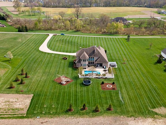 Amazing custom home with over 5,750 finished square feet situated on 5.4 acres in Northwest Allen county. Conveniently located close to Parkview hospital, Dupont hospital, schools, shopping and much more. This is a one of kind setting with protected wooded wildlife, fields and has a 300 foot concrete driveway entrance. Heated in-ground pool with waterfall that has an automatic cover. Also included in the sale is a master spa legend series 8 person hot tub. In the back there is a landscaped fire pit area and a play area with a rainbow play set that is included. Generac 8 kw generator provides the safety and security needed in the event of a power outage. Interior showcases custom trim work throughout, curved staircases, hardwood floors and has been completely repainted. Complete kitchen remodel with quartz counter tops, stone back splash, custom lighting above and below cabinets and all new Frigidaire gallery series stainless steel appliances. All of the bathrooms have been updated with vanities and fixtures. Butlers Pantry walk thru from kitchen to formal dining, mudroom with built-in lockers. Two-way fireplace in hearth room and great room with built-in bookcases, two story wall of windows. There is a surround sound system throughout home that does include the pool/patio area that includes the tv. Main floor master with dual vanities and walk-in closets, jetted tub with columned entry and walk in tile shower. Finished Daylight basement with all new wood plank tile and carpet flooring includes a full kitchen, 5th bedroom, playroom, family room and 2 storage areas. Full list of updates are uploaded with the listing.