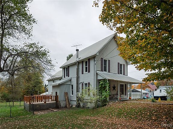 Charming 4-bedroom, 2-full bath old-style home situated on a spacious 1-acre lot in the Village of Harrisville. This meticulously maintained 1,868 sq. ft. property features beautiful original hardwood floors, detailed woodwork, and a stunning staircase that adds timeless character. The modern eat-in kitchen offers functionality and style, while the large living and dining areas provide plenty of room for family gatherings and entertaining. Enjoy the convenience of a first-floor laundry room, a full basement, and a walk-up attic offering ample storage space. Outside, relax on the open porches overlooking a large yard perfect for gardening, entertaining, or simply enjoying the peaceful setting. Additional features include a detached 2-stall garage, blacktop driveway, public water, and a fuel oil/wood combination forced-air furnace. This home combines old-world charm with modern comfort—don’t miss the opportunity to make it yours!