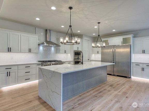 This Gorgeous home is located directly across the street from Liberty Bay. The high-end finishes abound, featuring extensive custom-built cabinets, built-ins & electric vehicle charging station. Chef's kitchen has been tastefully designed w/ sophisticated high-end appl. that include; 48" z-line propane range & hood, Deluxe side-by-side fridge & freezer combo, built-in microwave & wall oven, & two dishwashers all by Frigidaire. The great room will feature custom-built entertainment center, w/ gas fireplace complete with a rich stacked stone surround. Covered outdoor living area w/ 2nd gas fireplace, and so much more! Only 3 opportunities to make one of these elegantly functional homes yours.