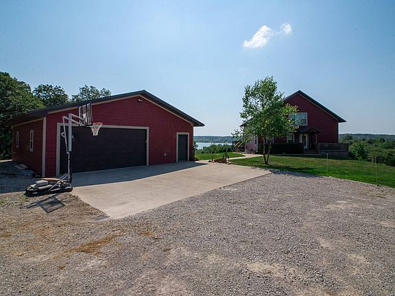 A majestic view of beautiful Lake Sundown with a combination of woods and meadows and over 13.5 acre surveyed. This lake view acreage includes a custom 4 Bedroom, 3 bath home with nearly 3,100 square feet of finished living space. At first entrance of this Lake Sundown home you will immediately be drawn to the open floor plan and cabin charm, large vaulted ceilings, with a wall of glass looking out to the lake. The main floor includes a large family area with tile flooring and a gas fireplace, and a custom kitchen with beautiful custom hickory cabinets, soft close drawers, formica countertops and tile backsplash . The rest of the main floor has one bedroom, two baths, linen and coat closet and laundry room on the main floor. The upper loft area is currently used as a bunk house for kids and guests and offers panoramic views of the lake and an addition open 720 square feet of finished living space. The walkout basement offers three conforming bedrooms along with a wet bar and full bathroom. Forced air heat and central air and quality walnut and pine finishes throughout the home. Main level and lower- level gas fireplaces. An upper main floor wood deck extends across the entire back of the home and is a great place to lounge, BBQ and enjoy the view overlooking the lake. The lower concrete deck has another beautiful view of your property and the lake also just steps from a large outdoor firepit! Nice insulated detached 30âEUR² by 36âEUR² garage makes a great place for vehicles, boats and additional storage. The price includes a dock for your boat or watercraft in private marina within walking distance from the property. Listing price also includes a Stainless-Steel appliance package. Boat's, jet skis, canoes, kayaks, tubes etc can be used on the 400 acre lake just a short stroll from the property. Just 1.5 hrs from Des Moines and 2 hours from Iowa City. Move in ready.