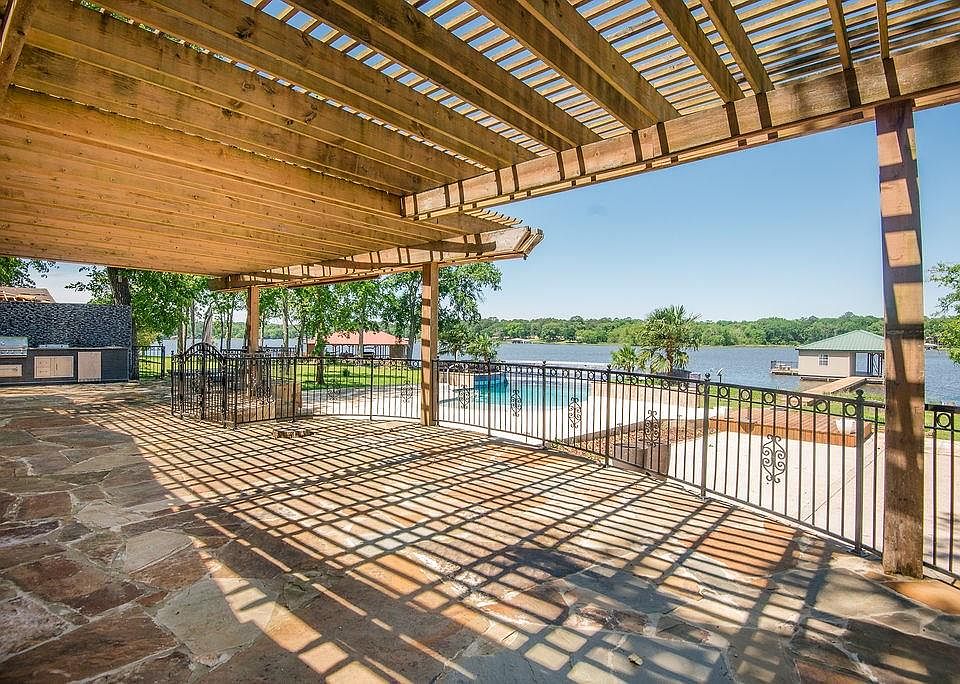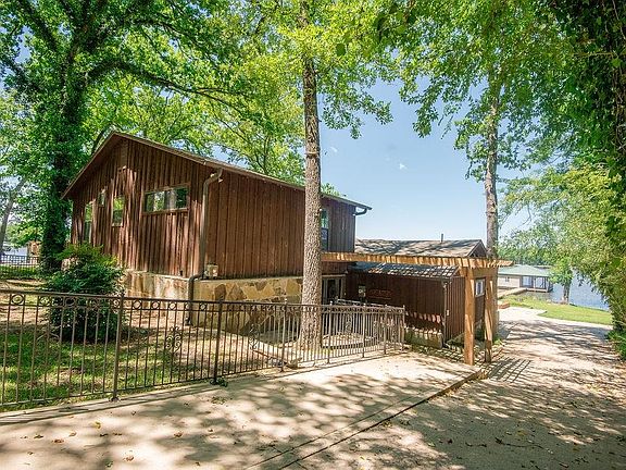Welcome to your dream lake house. Entertaining includes an outdoor kitchen, flag stone patio (recently redone), and a salt water pool. Great view with beautiful sunsets every evening. Boathouse accommodates boat and jet skis; also has a storage area that could be used for entertainment or tack room. The master suite is downstairs including the master bath and walk in closet. There are 2 additional bedrooms upstairs, each with with their own bathroom. The kitchen has stainless steel appliances; 3 ovens, 5 burner gas cooktop, ice maker, wine chiller, microwave, warming drawer, and trash compactor. Living & dining combo with breakfast bar. Detached 3 car garage with potential for a 374 sq ft upstairs apartment.