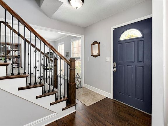 Step into luxury with this captivating two-story colonial, tucked away in a serene cul-de-sac. With four bedrooms and 3 1/2 bathrooms, the house features beautiful hardwood floors, a formal dining room, and an open concept kitchen. Enjoy the natural light streaming through numerous windows, revealing a patio and a spacious private backyard with 6' privacy fence. The updated kitchen showcases granite countertops, stainless steel appliances, a gas range, and ample storage, including a center island for extra seating. Upstairs, four large bedrooms with walk-in closets await, including a primary bedroom with a private office and a luxurious updated master bath. The finished basement adds versatility with a fifth nonconforming bedroom and a full bathroom. Conveniently located near restaurants, shopping, and entertainment, this home offers easy highway access and falls within the Olathe school district. Your perfect haven awaits!