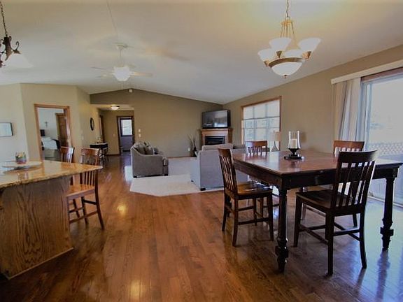 Fabulous move in ready home with five bedrooms and 3 full baths. Home has an inviting great room upon entrance with hard wood flooring, kitchen with center island, light and bright dining area and living room with corner cozy gas fireplace. Master bedroom has an ensuite bathroom with corner whirlpool, Jack and Jill sinks, and California walk in closet. Main level includes mud room, laundry, office area and generous closets throughout. Lower level features include a large media room wired for sound, wet bar, and huge family room. Lower level also has two bedrooms, full bath, den area and great storage space. This home is always cozy and energy efficient as it has a 7 zone in floor heating system. Additionally this home has an enormous insulated finished garage with high ceilings and in floor heating. This property is located on a cul-de-sac in a terrific neighborhood within walking distance to Pebble Creek Golf Course, Becker Community Center, Becker City Park and Dog Park.