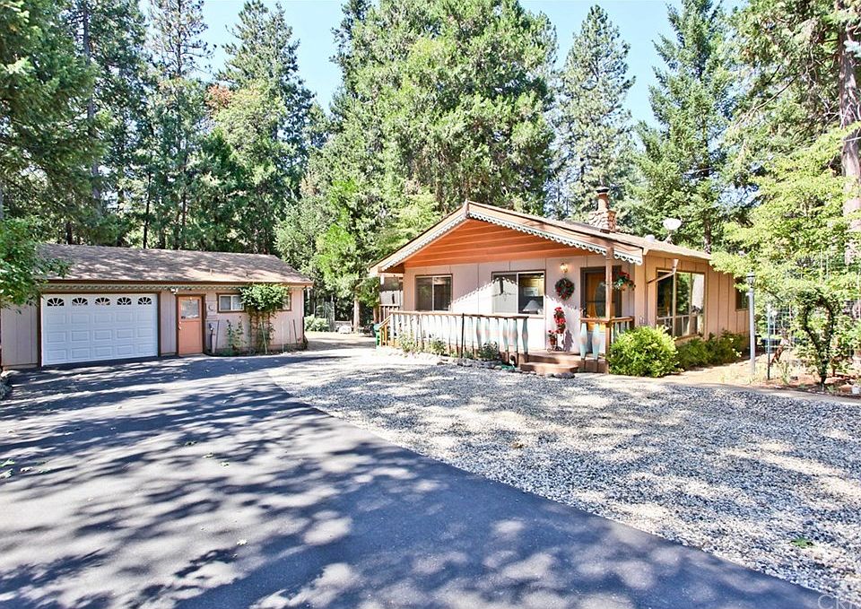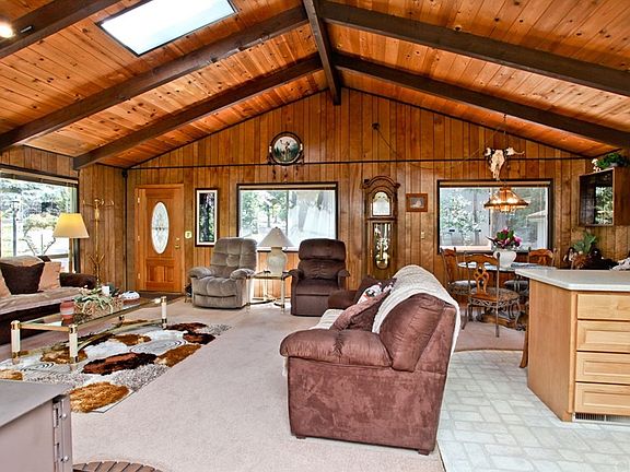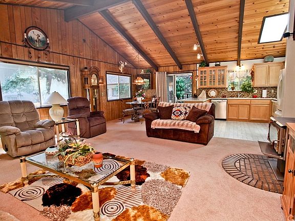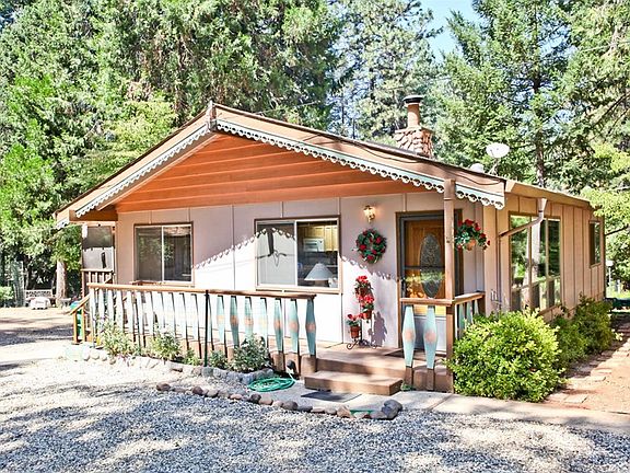 CHALET STYLE HOME WITH SEPARATE STUDIO! 2 bedroom 1 bathroom adorable home with updates throughout plus a detached studio!! Main home offers Great room featuring free-standing wood-burning stove, vaulted Knotty Pine beam ceilings, Bose surround sounds, and skylights w/reflective lining on inner sides to enhance light transmission. Great room includes dining area with built-in cabinet and sliding door leading to enclosed screened patio. Eye catching light & bright 2015 full kitchen remodel w/corian counter tops w/attractive backsplash and Alderwood cabinets with pull outs. Remodeled bathroom w/walk-in shower, separate tub, newer toilet and vanity. First bedroom (being used as office now) has large walk-in closet and access to laundry area with tons of storage. Second bedroom looks out over the back yard w/slider to covered enclosed patio. Over-sized one car garage (with lots of extra space for small work shop, etc) w/newer roll-up door, 50 amp box for RV hookup. Also included with garage is an amazing bonus studio (believed to not be included in square footage) offers full kitchen, large living/bedroom area w/ceiling fan, infra-red space heater, wall unit a/c, two built in wardrobes, and a remodeled bathroom. Behind garage is a 2-car carport w/electrical outlets, 8x8 lockable storage shed, and woodshed. A total of 6 fruit trees all in deer resistant enclosures (2 apricot, persimmon, peach, apple and nectarine) w/drip irrigation around entire home. RV parking.