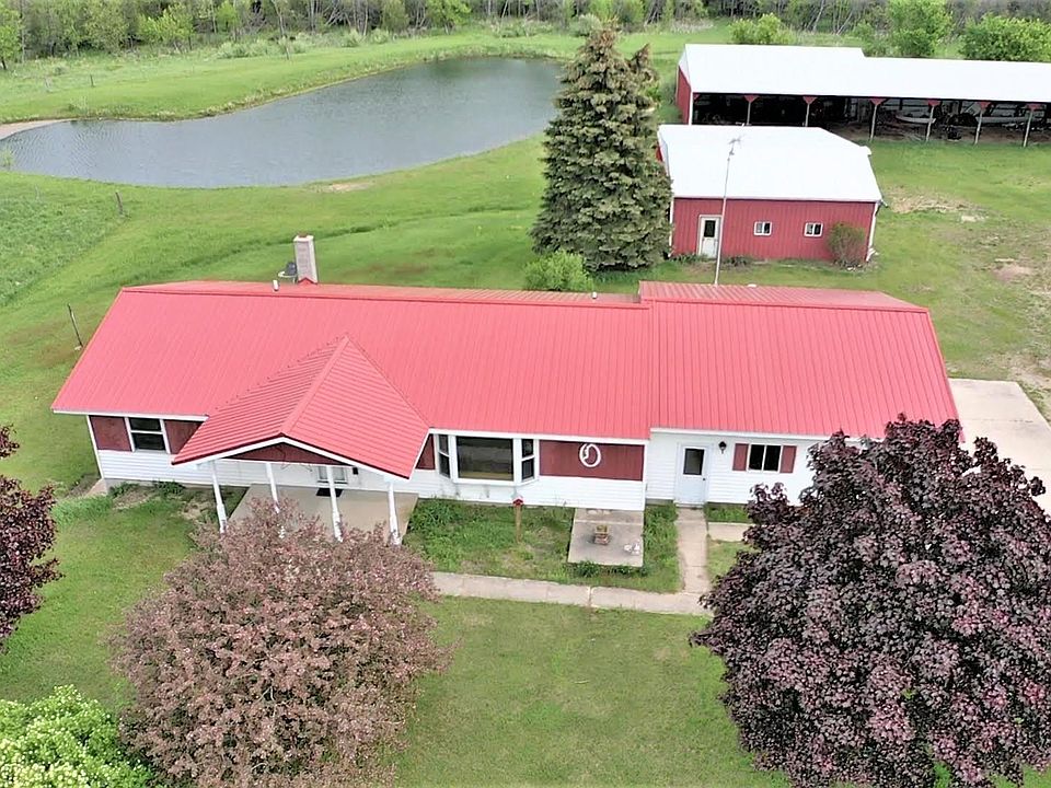 This secluded home has three bedrooms, two baths and is approximately 1500 square feet with approximately 1400 below ground that can be finished. The walkout basement has daylight windows and will not take much to finish. Most of the interior of the house was recently painted. New floor covering will really make this home shine. If you have ever wanted to own your own mini farm, here it is. Approximately 30 acres with some wooded, some clear and some tillable. There are multiple out buildings, a 24 x 32 pole barn with a cement floor, a 32 x 20 additional adjacent space with a poured wall, a 95 x 32 hay storage building, a 100 x 30 equipment storage barn and a 60 x 100 cattle barn with pasture and pond. The larger pond is stocked with fish and lets not forget the other wildlife you will see year round.