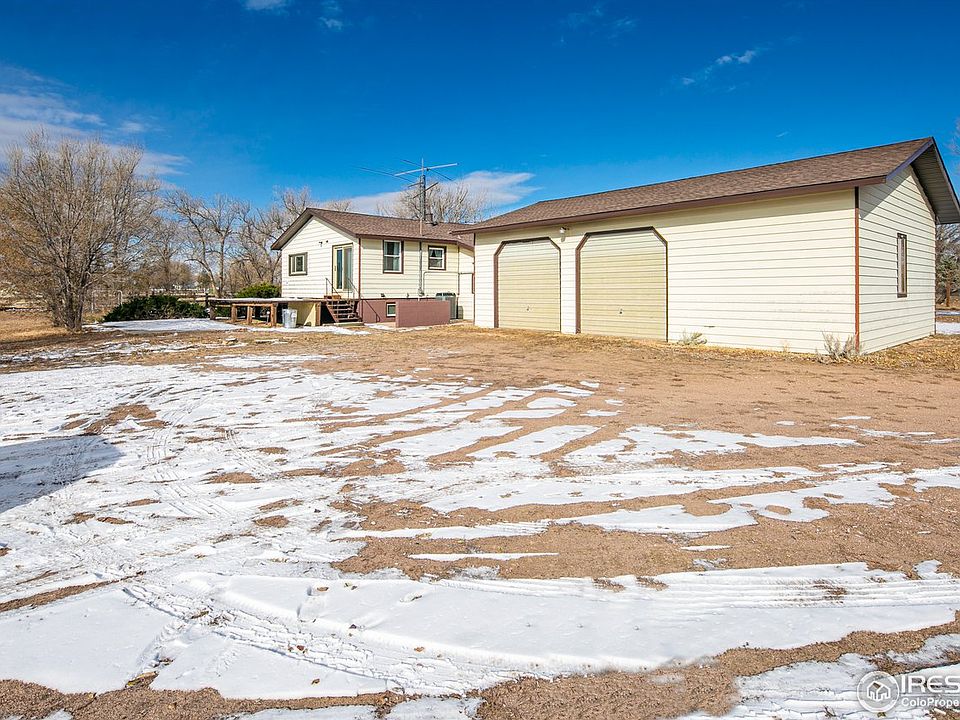 Quant 2+ Acre Property that has a Good Sized House & Attached Large Garage/Shop with Dual Access off of 2nd Street. The property is fenced & is well established & could be subdivided into 2 separate properties thru Town of Nunn. Lots of trees, garden, bonus room & chicken coop included. Being sold As-Is & has lots of potential. Finished Basement, wood burning Stove, Bonus Room & large back deck.