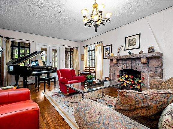 This lovely 1929 Tudor-style home is aptly described as "one of a kind" and "very special."  Its charm and homey feel will captivate you.  The home features a large, light filled living room with original metal framed windows and wood burning fireplace; "old world" textured walls, a warm and functional updated kitchen with leathered stone countertops, unique crescent shaped eating table and lots of cabinet storage.  The primary bedroom is roomy, with an en-suite bath addition that features a stunning etched pane window, 2 stained glass windows and unique porcelain sink.  The office/study may be one of your favorite rooms with windows that provide a wonderful view of the backyard and cute shed. The 2nd floor has a bonus room and large bedroom with built in desk for a great work/study space. Two walk in attic spaces off that room will satisfy all your storage needs!  Nestled on a corner lot, this home is walkable to both Edgewood village and Central Park. This home is a must see!