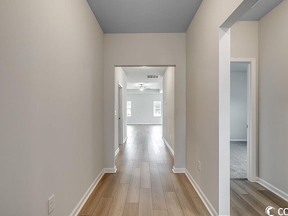 Welcome home to the Durham! Live a laid-back lifestyle in your new home at Merrill Villas! Located in Carolina Forest, but without the traffic– one of the most popular communities in the area, with an award winning school district – between Myrtle Beach and Conway along the west side of the Intracoastal Waterway. This single-story home features three bedrooms, two bathrooms and a covered porch. The kitchen comes equipped with white cabinets, granite countertops and GE stainless steel appliances & gas range. The split-bedroom layout has the primary bedroom separate from the two secondary bedrooms with all three bedrooms having walk-in closets. The primary bedroom also features an en-suite bathroom featuring dual sinks and a quartz countertop. Luxury vinyl flooring extends throughout main living areas of the home, including the primary bedroom, making clean-up a breeze. Irrigation included on this gorgeous pond view home site with water fountain view. Your new home is estimated to be completed in September. Photos are of a completed Durham for reference only.