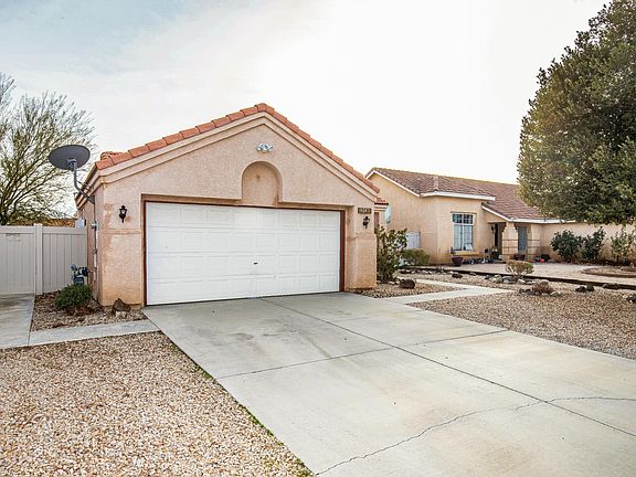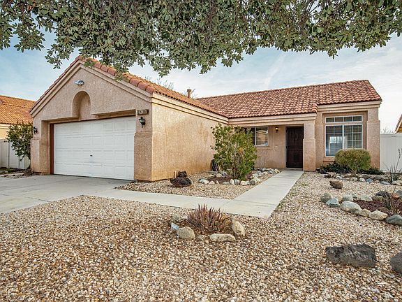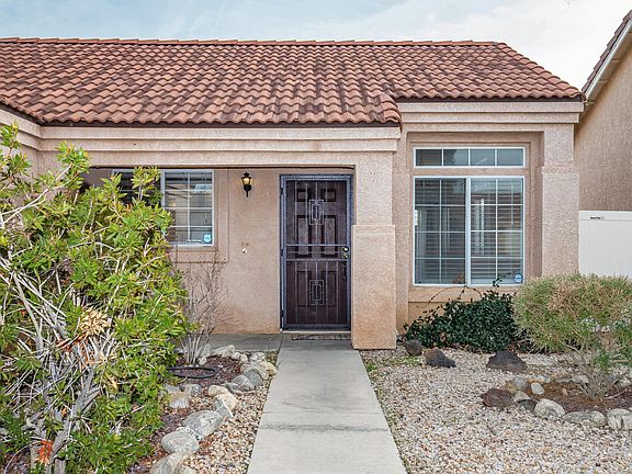 Welcome home to your quaint two-bedroom, two-bath single-story home on a cul-de-sac with PAID solar! Walking up to the house, you'll notice the low-maintenance landscape, two-car garage, tile roof, and a security screen door to allow sunlight and fresh air to enter your home. You'll be greeted with high ceilings, white paint throughout, new blinds, and neutral tile flooring. The family room has a beautiful brick fireplace and a sliding glass door to enter the backyard. The kitchen offers granite countertops, tile backsplash, black appliances(refrigerator included), and a single basin sink. You have the guest bathroom down the hall, upgraded with granite countertops, bronze hardware, and a tile shower/tub. Both bedrooms are a good size and have closet organizers installed. The primary bathroom is also upgraded with granite counters, bronze hardware, and a floor-to-ceiling tile shower. The backyard has plenty of space for entertaining and includes a patio cover and an above-ground spa. Located close to Edwards Air Force Base and many amenities nearby, this home is move-in ready!