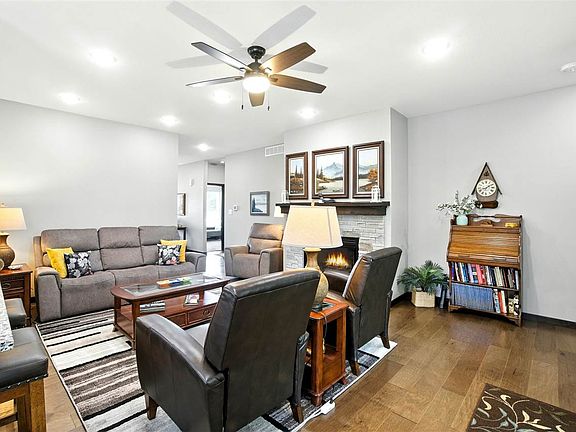 Custom-Built Home Near the Golf Course This stunning custom-built home offers the perfect blend of comfort, style, and functionality in a desirable location near the golf course. The welcoming foyer leads to a spacious living room with a wood-burning fireplace, while the light-filled dining room flows seamlessly into the well-appointed kitchen featuring granite countertops and a breakfast bar. A convenient main-floor laundry room connects directly to the attached two-car garage. The great room opens to a covered porch overlooking open fields, where you can enjoy peaceful views of wildlife. The fenced backyard adds both privacy and outdoor living space. The oversized primary suite is a true retreat, offering a large walk-in closet and a luxurious bath with a tiled walk-in shower, double sinks, and a private toilet closet. A second bedroom and full bath complete the main level. The finished lower level expands the living space with a generous family room, two additional bedrooms, a full bath, and ample storage.