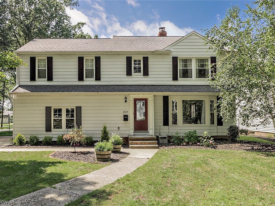 The property at 1424 Ford Road in Lyndhurst, OH is a delightful 4 bedroom, 3 bath Colonial style home that has been tastefully updated and well maintained. Uniquely situated on an oversized corner lot, this property offers expansive interior and exterior spaces for entertaining, recreation and relaxing. From the main door, the foyer opens into a lovely living room featuring an oversized window, natural light and hardwood floors. The main floor has a nice flow to the dining room, kitchen and family room - perfect for entertaining. In the kitchen, there are newer stainless steel appliances (2019) and a sliding door to the platform deck (2021) with a retractable awning. The fully fenced backyard is professionally landscaped and perfect for gardening or recreation. A half bath completes the main level. The hardwood floors continue on the second level featuring 4 bedrooms and 2 full baths. The primary bedroom is oversized and connects to a lovely renovated master bath (2020) with cus