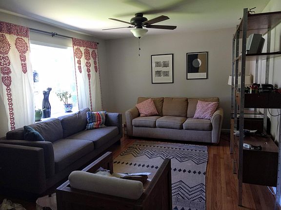 Recently painted top floor apartment of a picturesque house half a mile from the UVA hospital, within a mile of the Corner, and just over a mile from the Downtown Mall. Forest Hills Park is steps away at the top of the street. The three bedroom/one bathroom apartment has hardwood floors in the living areas. Two of the bedrooms and the kitchen overlook the backyard and a private wooded area with walking trails. 1-2 tenants are preferred. No more than 3 tenants. The light-filled upstairs apartment is accessed from the street. There is a basement unit that has a separate entrance. Great care was taken to sound insulate the two floors from each other during the renovation. There is no common ductwork and a variety of measures in place to ensure acoustic separation. The apartments share laundry on the lower floor and there are storage shelves in the basement for your use. The units share the large fenced-in backyard, with each having separate outdoor terraces. Owner pays for all utilities except internet, and also covers yardwork. The top floor's CenturyLink account can be transferred to the tenant. No smoking is permitted in the apartment. Parking for two cars is available on the street outside the house. Apartment can be partially furnished or unfurnished. No pets are permitted at this time.