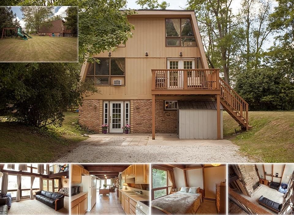 So Unique, Not a Drive By! This fine 4BR/3BA A-Frame is filled with more than 2300sf of living area. Main Level features a Vaulted LR, its 2 Story wall of windows draw in Natural light. There's an Effective Kitchen, adj Dining, access to both Decks for fresh air and Fare. Large BR, renovated BA w/Travertine tile finish off the floor. Up are 2 BRs served by Full BA, plus Loft overlooking LR and a Picturesque view to the West! The LL includes a convenient Entry from the driveway, durable Slate n Ceramic tile span the floors. LL offers a FR, 4th BR, Study, Laundry rm, Renovated Full BA. Warm woods thruout are calming, 3 Levels offer privacy. 2 Decks facing East n West boast Sunrise and Sunset views! Hot water Radiant Heat is very comfortable thru winter. Outside has Storage Shed for Lawn Gear. Situated on a large ~1/2Ac lot, plenty of room for Flower Gardens, Veggie Gardens, Play. Just down the street from the Scenic Bikeway, 1000 Ac Nature Preserve. Hike, Bike, enjoy the Great Outdoors!