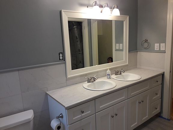 A fantastic house in a fantastic location! Completely remodeled top to bottom. Very large kitchen with stainless appliances, new tile floor, and all new kitchen cabinets covered in beautiful granite counter tops. This huge kitchen has an open floor plan with adjoining dining room. Just off the kitchen/dining area is a screened in back porch! The main level also has a large living room with hardwood floors, fireplace, and large picture windows. On the upper level there are three bedrooms with hardwood floors and remodeled bathroom. The bedrooms all have ample closets, the master having a large walk in. A completely remodeled bathroom includes, new tub/shower, and large double vanity. The bathroom is completed with all new tile, sinks, toilet, and fixtures. Down stairs is the spacious den with large new full bathroom including new shower/tub, toilet, and sink. This bathroom has plenty of space and also is where the walk in laundry room is located. A one car garage is accessed through the den. On the outside this property has large front and back yards and is surrounded on three sides with wooded lots. Conveniently located on a quiet cul-de-sac within minutes of either hospital and shopping! Renter is responsible for water, and utilities and lawn mowing. The city picks up garbage and recycling.