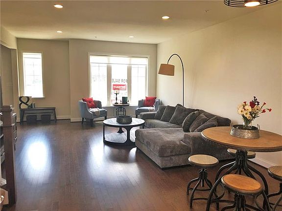 Wow! Stylish End Enit Town home at Hastings Plan loaded with Designer Upgrades!Smith+ Noble Fabric Roller Blinds throughout. Covered front porch+flexible open floor plan on the main level provides ease in entertaining. Beautiful hardwood floors are carried throughout the living + dining areas, kitchen and great room. The kitchen boasts white shaker style cabinetry, granite counters, upgraded stainless steel appliances + center island with breakfast bar opens to expanded dining area and great room w/door to the rear deck. Spacious romantic owner's suite offers walk-in closet, dual counters, chrome fixtures +ceramic tile tub/shower combination w/glass enclosure. Two bedrooms, hall bath + laundry on 2nd floor. Finished game room w/ high ceilings is an added bonus. Freshly painted interior 2019+ remote controls for ceiling fans. Sidewalk community w/ locally owned restaurants + shops. A+ location to I-79+Rte 19, walk to Boyce, Mayview+Fairview Parks! This one Shines w/Many Improvements
