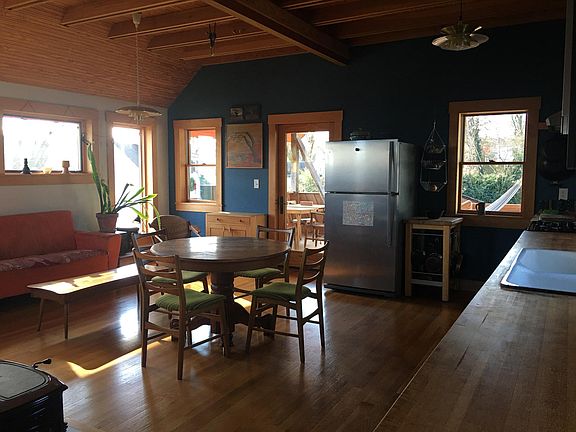 Unique three-bedroom, three-story house. Close to Rivanna trail and downtown. Vegetable garden, optional chicken flock. Large kitchen-living area, office-studio , 2 bathrooms, big back porch. No dishwasher. Full or partial furnishings available at no charge. Flexible lease start, 1 year only. The house was owner-built in 2013. Very well insulated, and most of the electricity is provided by solar panels. No heating bill if you take advantage of the two woodstoves. A/C and heat also available via mini-split units. Renter is responsible for mowing the lawn, and willingness to tend an organic vegetable garden is a plus.