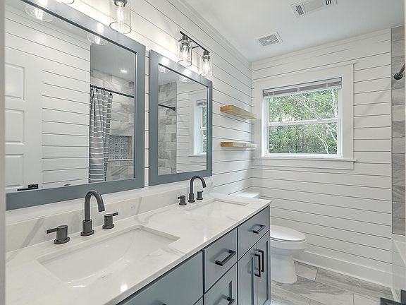 Modern, cottage-style home on James Island less than 5 miles from the beach! Beautifully refinished hardwood floors flow throughout the entire home, with oversized porcelain tile floors in the laundry room and bathroom. Laundry room also has a wide tiled platform for washer and dryer! Kitchen boasts natural stone backsplash, butcher block countertops, brand new soft-close cabinetry, stainless steel appliances, and designer LED lighting. Bathroom has marble slab countertop with dual sinks, custom-built vanity designed by local craftsman, shiplap & floating shelves, and tiled bath with inset designer shelf and chic water hardware. Matte black matching door hardware throughout ties in with designer ceiling fans in every bedroom. Brand new roof, new windows, new HVAC, and new hot water heater(along with vapor barrier in crawlspace and radiant barrier in attic) all mean energy-efficiency and ease of mind are yours! Minutes from grocery shopping, restaurants, and downtown Charleston on a quiet dead-end street make this the perfect location. Oversized lot with huge back yard shaded by mature trees and lovely new tropical landscaping out front gives this home an oasis feel. Come enjoy James Island like the locals do!