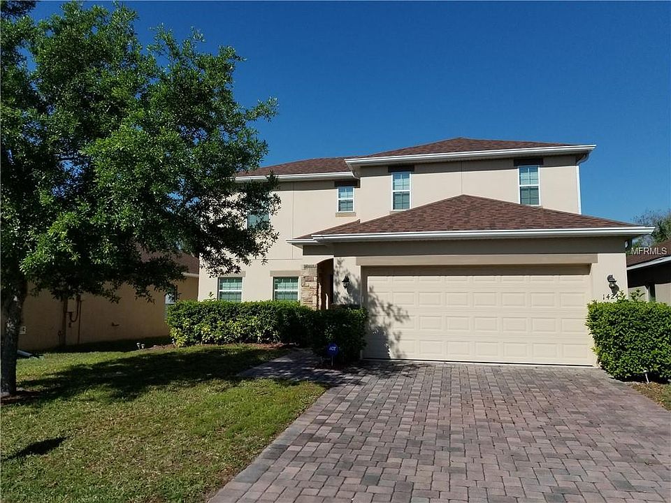 Is this your next dream home? Stunning 4 Bedroom 2.5 bath pool home just minutes to Disney, Champions Gate shopping and eateries, Posner Mall and Orlando. I-4 access is approximately 4 minutes and the Disney exit is just a few minutes further. Master bedroom is on the first floor with walk in closet, and bath that features composite countertops with dual sinks, a separate tub and shower. The kitchen features stainless steel appliances, crown molding, granite counter tops, breakfast bar and pantry. The second floor loft has lots of space and features a work station built in counter, and extra closet storage. The second bath features dual sinks with laminate counter tops. Each evening the sun sets on your solar heated screened pool that overlooks a beautiful pond and mature trees. This home will not last! To view call today!