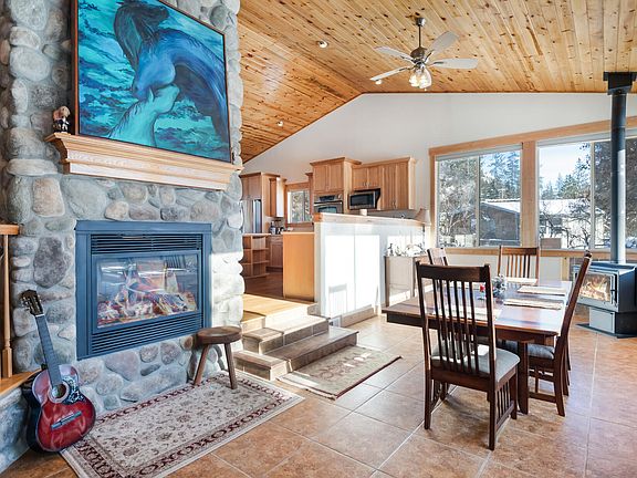 VETERANS ASSUMABLE VA LOAN WITH 2.25% INTEREST RATE FOR QUALIFIED BUYERS. Beautifully maintained home ideally situated in the heart of Mineral County with Clark Fork River access and myriad outdoor recreation opportunities close by. Property is only minutes from Lookout Ski Resort and Quinn's Hot Springs. This lovely custom home on .85+/- acres features an open concept floor plan with hardwood floors, vaulted ceilings, double-sided fireplace surrounded by floor-to-ceiling river rock, and oversized windows to enjoy the river and mountain views. Highlights of the home include a chef's kitchen with an abundance of work space and cabinetry, main level primary suite with jetted tub and spacious walk-in closet, upper-level entertainment area with wet bar and theatre. The oversized garage includes an attached 1700+sf workshop and a well-appointed upper-level guest apartment with a gas fireplace and separate entrance. Contact Caron Lavoie 406.880.8855 or your real estate professional.