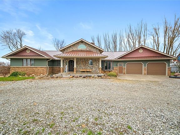 This 2.74-acre ranch home offers a relaxing retreat for those seeking a peaceful countryside lifestyle. Its exterior with beautiful stone accents & large windows allow ample natural light to flood the interior spaces.Upon entering the home, you're welcomed into a spacious foyer adorned with new lighting fixtures and rich hardwood flooring that flows throughout. Straight ahead the inviting living room beckons with its vaulted exposed wooden ceiling & a cozy fireplace, creating the perfect ambiance for relaxation and gatherings.Adjacent to the living room is the large eat in kitchen, an entertainers dream. It features custom cabinetry, butcher block countertops & a spacious island. A dining room right off the kitchen is perfect for your family meals.To the left down the hall you will find the master suite & 2 perfect bedrooms & a large full bath. The walk out basement allows the fun to go outside without pause. The wet bar is another awesome spot to entertain. A 4th non-conforming bedroom & 1/2 bath allow a perfect area for guests when they come to visit.The backyard oasis is a peaceful retreat for the whole family. Including a tree lined area, chicken coop & large 30x45 utility building allows a place for all your toys & projects. If you love peace & quiet then this is the perfect home for you.Call today to take a look!