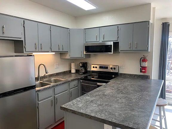Available 9/14/2025......This 1 bedroom 1 bathroom beautifully remodeled upstairs apartment in a quiet and safe neighborhood. Full size washer and dryer in unit, built in microwave, new windows, new lights, off street parking and secure key pad entry. Comfortably furnished with 2 televisions, fully stocked kitchen, carpeted floors throughout. Bright and sunny! Water, trash and gas heat are included along with electric and blazing fast high speed internet. Available for flexible lease terms 1 month to 9 months in duration. Credit check, background check and employment/ income verification required! Sorry no pets. 1-3 month lease preferred but other lease terms can be considered.