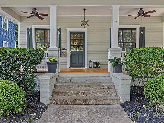 Timeless 1920's bungalow on a coveted street in the heart of Plaza Midwood's historic district - just steps from restaurants, shops, parks, and much more! Filled with charming details like hardwood floors with elegant inlays, decorative moldings, and a brick fireplace, this 3 bed / 2 bath home is perfectly suited to modern living. Ideal layout with open-concept kitchen, living, and dining areas ready for casually relaxing at home or hosting lively gatherings. Spacious, main-level primary suite is a true retreat with a beautiful en-suite bathroom featuring a soaking tub, separate shower, and two vanities with built-in storage. Bonus space upstairs offers flexibility and could easily be used as a secondary living area, office, or playroom. Great indoor-outdoor flow thanks to a beautiful covered front porch, idyllic screened porch, and private backyard. Fresh exterior paint and roof replacement (2024). Amazing opportunity to live in one of Charlotte's most sought-after neighborhoods!