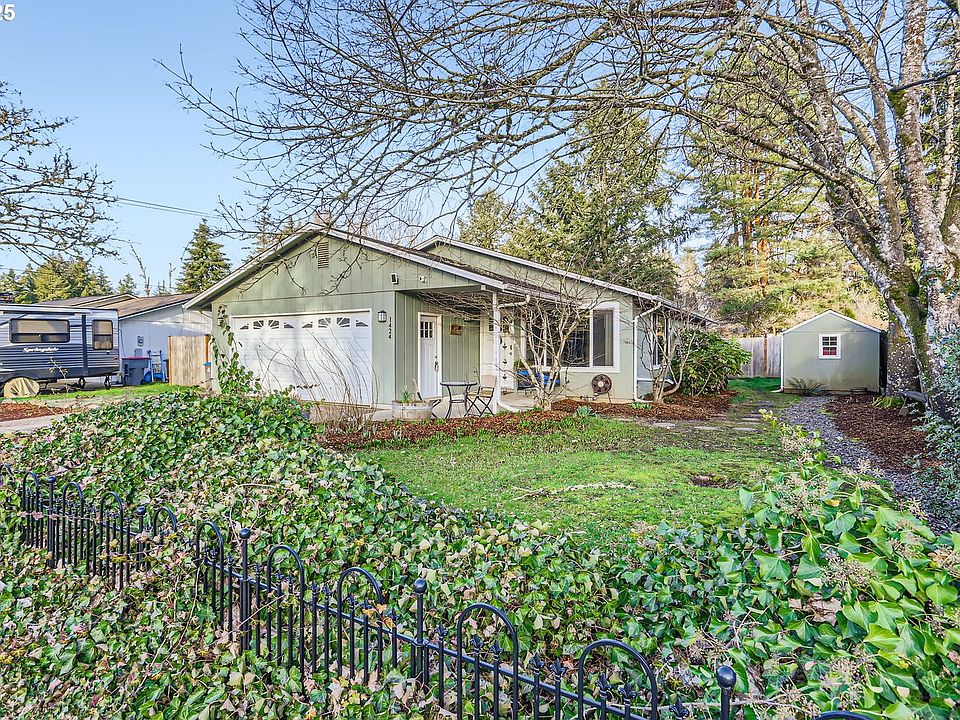 Very clean 1-level Charmer! This spacious ranch style home features three bedrooms two full bathrooms, laminate flooring, ductless HVAC, ceiling fans, lots of storage, updates throughout, an oversized garage, plenty of parking all on a large fully landscaped mature lot!