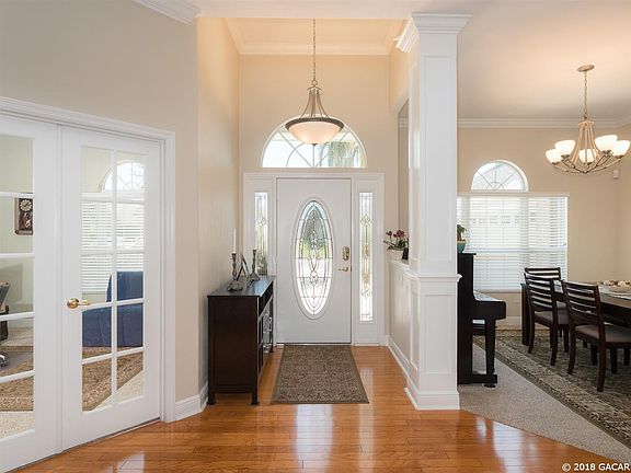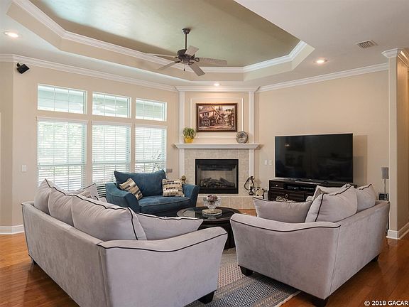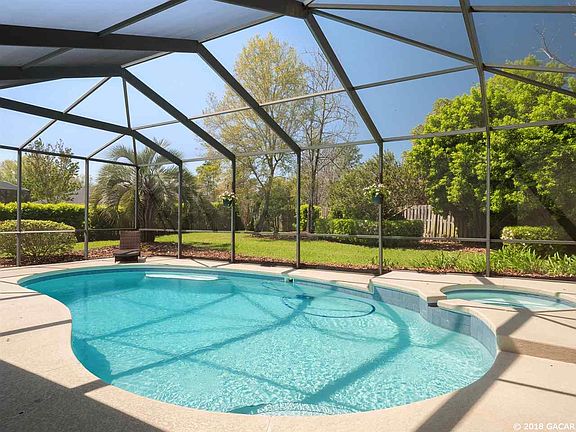 Exquisite 3BR/2BA+Study POOL home on large, private fenced lot in desirable Cobblefield! Gorgeous open floorplan with high ceilings, extensive crown molding, gleaming hardwood floors and transom windows for bountiful natural light. Wonderful kitchen with new GRANITE counters, STAINLESS appliances, breakfast bar, separate pantry and gas range. Great room with gas log fireplace and formal dining room. Spacious Owners Suite opens to pool area and features large bath with separate jetted spa and walk-in shower. Screened enclosed lanai and pool with heated spa. Oversized 2 1/2 car garage provides an abundance of storage. Zoned for Chiles Elementary, Kanapaha Middle and Buchholz High Schools. HOA maintains front yard, energy-efficient reclaimed water used for irrigation! There are many upgrades to this lovely home, call for more information! Please note: Special Financing Incentives available on this property from SIRVA Mortgage.