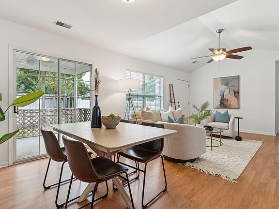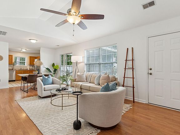 Welcome to 1424 Sandstone Place, a beautifully designed one story, 3 bedroom home in the highly desirable Peninsula community. This home is perfect for easy, accessible living with an open floor plan that connects the living spaces seamlessly. The spacious owners' suite features a stunning vaulted ceiling, creating a light and airy atmosphere, along with an en-suite bathroom and walk-in closet. It also boasts a new HVAC system installed July 2024!This home sits on a private homesite, ideal for outdoor living, entertaining, and gardening. With plenty of space to create your own personal outdoor retreat, the yard is a perfect complement to the home's interior.The one-story layout adds convenience, making this home easy to navigate and ideal for those looking for a home without stairs. Located in an established neighborhood, The Peninsula offers a peaceful, friendly atmosphere with mature landscaping and a welcoming community vibe. Residents of The Peninsula enjoy access to community amenities, including a pool, playground, and scenic walking trails. This home's prime location offers easy access to the best of Charleston. Downtown Charleston is just 15 miles away, allowing you to experience the city's rich history, world-class dining, and shopping. Mount Pleasant is a quick 10 mile drive, offering top-rated waterfront dining at Shem Creek, and a variety of outdoor recreational opportunities. Additionally, Daniel Island is just 6 miles away, with its beautiful parks, private golf courses, and Credit One Stadium, where you can enjoy concerts and sporting events. This home at 1424 Sandstone Place is ideally located for those seeking convenience to Charleston's top destinations, while still enjoying the tranquility of an established neighborhood. Whether you're looking for one-story living, a spacious private yard, or easy access to Mount Pleasant, Downtown Charleston, and Daniel Island, this home offers it all. Don't miss your opportunity to own this beautiful property in The Peninsula community!