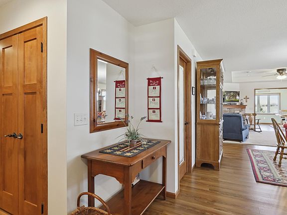 Custom built one level living twin home with no association dues! Built by local builder Betker Construction. Custom maple kitchen and millwork throughout, stainless steel GE appliances, center island, some soft close, pull out shelves, baking organizer, garbage/recycle pull outs, LVP flooring, large walk in pantry, microwave with built in oven, RO water filtration system, in floor heat throughout, central vacuum, 2 stunning tray ceilings, Hunter Douglas custom blinds, large sunroom with sunset views, 14 x 14 private concrete patio with remote controlled awning, covered front porch, Aprilaire furnace humidifier, master suite with walk in closet and private bath with walk in shower. Laundry room with soak sink, hanging rack, closet and coat rack, finished garage with walk up UL storage. This property is in mint condition so why wait for a new build?