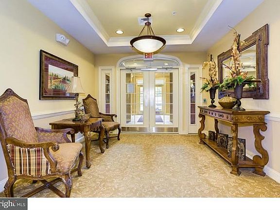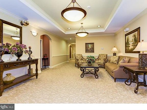 Beautiful, meticulously maintained 2 bedroom luxury Palazzo model in Cinnaminson's Siena! Large spacious floor plan in elevator served building with lovely lobby areas and private, secure entrances. Pretty foyer entry with hardwood flooring, double coat closet plus large walk-in storage area. Arched entry to bright and sunny Living and Dining Rooms with crown molding and plush beige carpeting. Both rooms open to spacious kitchen with 42" cherry cabinetry (some with pull-out drawers), pantry closet and upgraded appliances. Lovely eat-in area with slider to private Veranda overlooking wooded area. Spacious master suite with plush beige carpeting, tray ceiling and two large closets, one a walk-in. Very large master bath with double cherry vanity, huge linen closet, tile shower with bench and ceramic tile flooring. Convenient second bedroom also with a walk in closet. Laundry room with shelving and matching Whirlpool washer and dryer to remain. Second full bath with cherry vanity and one piece tub surround. Vinyl tilt double hung windows throughout for easy cleaning, custom window blinds and upgraded light fixtures. Most desirable building with nice views from all windows and on site Siena club center with card lounge, kitchenette, billiards, computer area and fitness! Easy access to shopping, restaurants and transportation and Easy to show!