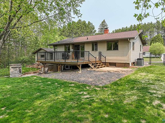 Tucked away on a dead-end street, this ranch-style home offers the perfect blend of privacy, comfort and convenience with plenty of outdoor living space. The fenced-in back yard provides a safe and spacious area for kids, pets, or to simply enjoy your own private retreat. The large deck is perfect for entertaining guests before gathering around your outdoor stone fireplace; but don’t forget to break away and enjoy the benefits of living a block from the Cloquet Country Club and short walks to the city parks. Inside, you’ll be amazed with the amount of finished living space along with the ample amount of storage. This home offers three bedrooms, two bathrooms, a sauna, lower-level family/rec room, walkout basement and an over-sized one-car detached garage. The kitchen has been untouched and waiting for your personal style. To complete the main level flow, extra flooring for the kitchen was purchased and will remain with the home. Improvements to the home include updated flooring throughout the majority of the upper level, central a/c unit in 2023, 96% efficiency Lenix furnace in 2014, gas water heater in 2019, upgraded solid interior doors and back yard fencing. This home has recently been through every possible inspection and reports are available. Don’t miss your opportunity to start enjoying this home today!