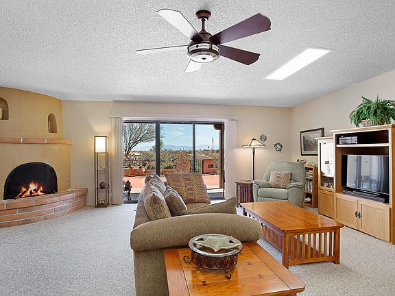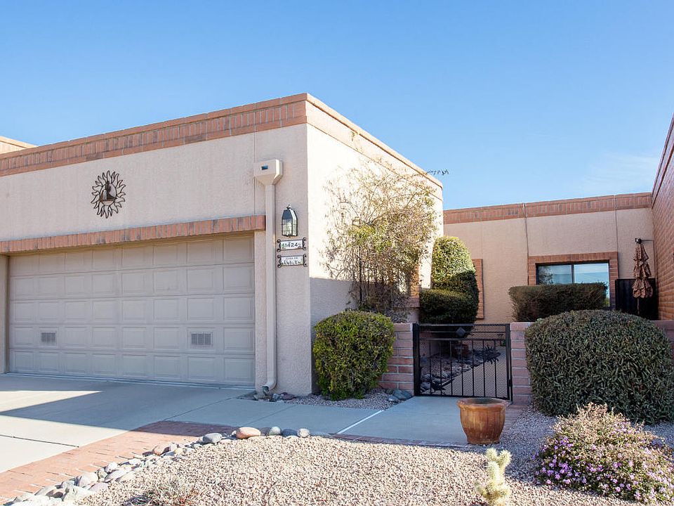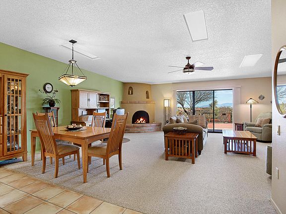 Beautiful mountain views to the Northeast compliment this Ensenada Floor Plan! Private & peaceful setting allows you to relax on your back patio to hear the soothing sound of birds chirping. In the living room you can cozy up to the beehive fireplace that makes a stunning Southwestern focal point. The kitchen has updated Corian countertops that make cooking clean up effortless as you enjoy delicious drinking water from the installed water treatment system. A delightful front court yard leads you to an attractive security screen door. The den makes a great office or family room and natural light is provided throughout by the many skylights that brighten up the home in all the right places. You'll also appreciate the oversized 2-car garage with storage cabinets. Roof recoated 10/2017