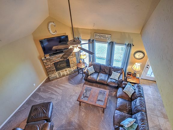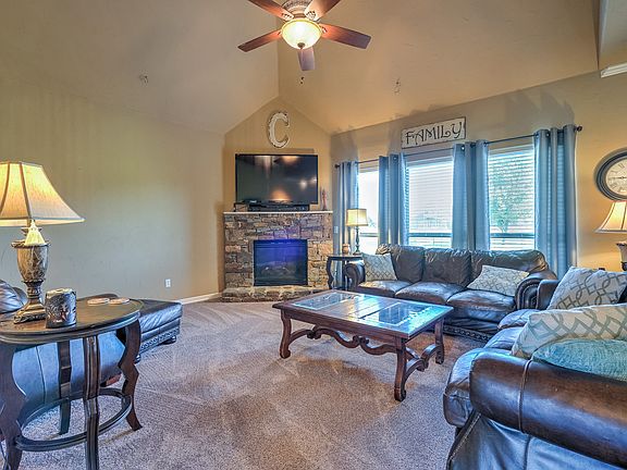 Former builders model home on Battle Creek Golf course, this 1.5 story brick home has 4 bedrooms, 2.5 baths, office, family room, w/fireplace, kitchen w/eating bar, island, closet pantry, granite tile backsplash. Large upstairs game room w/deck. 3-car insulated tandem garage. 4th bedroom could be a media room. Large master has walk-in closet, window seat storage, access to patio, bath w/ 2 sinks, whirlpool tub & stall shower. Huge game room has wet bar, refrigerator & doors to wood deck.