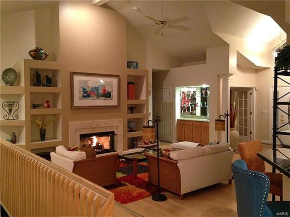 Wildwood atrium ranch on .56 acre lot with great views, level rear yard, backs to trees & common ground. Over 4400 sq ft of finished living space. Hardwood floors in Great rm, Kit, DR, breakfast & hearth rm. Great rm w/ soaring cathedral ceilings, wall of windows, marble surround gas log FP, built-in shelves/alcoves & wet bar w/ granite counter. Kit features 12' ceilings, 42'' custom maple cabinets, granite counters, cnt island w/ gas cook top, wall oven & double pantry. Bkrm w/ planning desk, hearth rm leads to cedar deck. Sep DR w/ coffered ceiling, bay window & pass-thru to kit. Vaulted master suite, w/ ample w/in closet, bath w/ sep shower & jetted tub. Open atrium leads to LL with huge Fm rm w/ raised hearth gas FP, wet bar, 2 nice sized bdrms, 2 full bths & plenty of storage. New in 2015:Roof, ext paint & deck, water heater in 2016.In-ground sprinkler system. HPP. Rockwood Schools. Close to schools, parks, trails, shopping & the Chesterfield Valley
