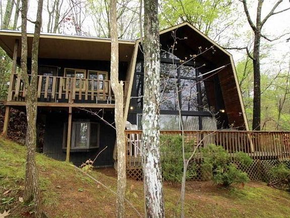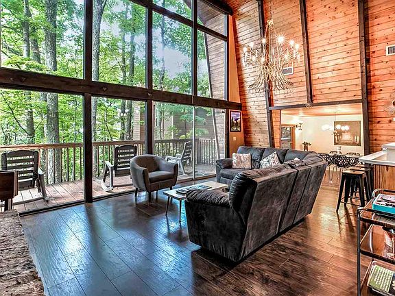 Authentic and beautifully restored mid-century A-Frame in the heart of Gatlinburg's Chalet Village. Secluded enough to enjoy a quiet vacation, but close enough to downtown Gatlinburg to have a pizza delivered or to grab an Uber to the shops and nightlife downtown. This chalet boasts 3 bedrooms and 3 baths, with an oversize master suite complete with private balcony upstairs. Relax after a day of hiking in the great room under the vaulted ceiling, and watch for occasional bears and other woodland creatures through the wall of glass looking out into the woodlands. Whip up a home cooked meal in the large kitchen with plenty of counter space, and enjoy it in the formal dining room with family and friends. The owners have overlooked no detail in renovating this property, adding many modern touches while highlighting its mid-century charm. There is plenty of room to spread out in this open floor plan chalet, perfect for a second home or vacation rental.