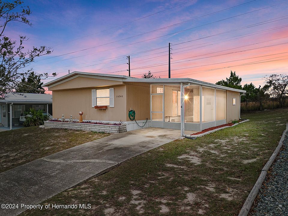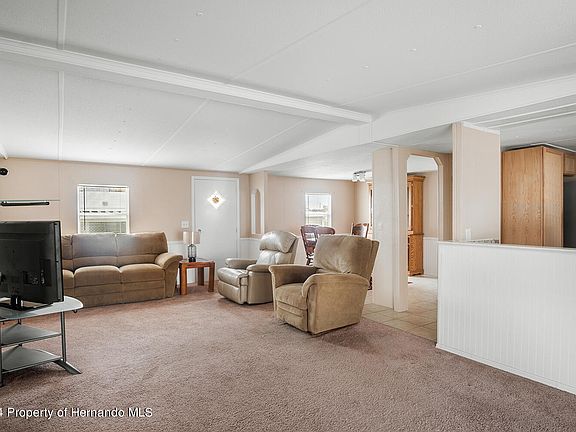 Check out this adorable cute and cozy, 3 Bedrooms 2 bath double wide mobile that is turnkey and comes completely furnished In Brookridge 55+ Active Community in Brooksville.This community is loaded incredible amenities, like the 72 Par Golf Course, or the Clubhouse with Swimming, Basket Ball, Tennis and Shuffle board, but to get to Brookridge you'll likely be crusing past one of the area's popular intersections at State Road 50 and Mariner Blvd which is where you'll find all your favorite favorite Shops and restaurants. Plus you're only a mile from the 589 Suncooast Parkway giving you easy access to down to Tampa! Don't forget that this is low Hoa fees at only $50.00 per month. 14240 Brookridge Blvd is a 3 Bedroom, 2 bath home with 1,152 sq ft. and At the head of the driveway you come to the screened in porch with plenty of room for furniture to enjoy Florida's year round weather. And also you will notice the coverd outdoor Utility Room to store all your tools and gardening supplies. Plus you have a 2nd Washer and Dryer hookup. Stepping thru the slideglass doors, you walk right into the main living space of this split plan home. Where you have the dining room and kitchen overlooking the living room. The kitchen comes with all appliances as shown and has lots of cabinet storage. And close by we have the homes other Washer and Dryer hookup, giving you the option for laundry inside, or having another climate controlled space. Down the hallway you will notice bedrooms 2 and 3, each with their own walk in closet, and share the guest bathroom in the middle. Don't forget to check out The Owner's suite that is just beyond the formal dining area and has it's own walkin closet and bathroom.